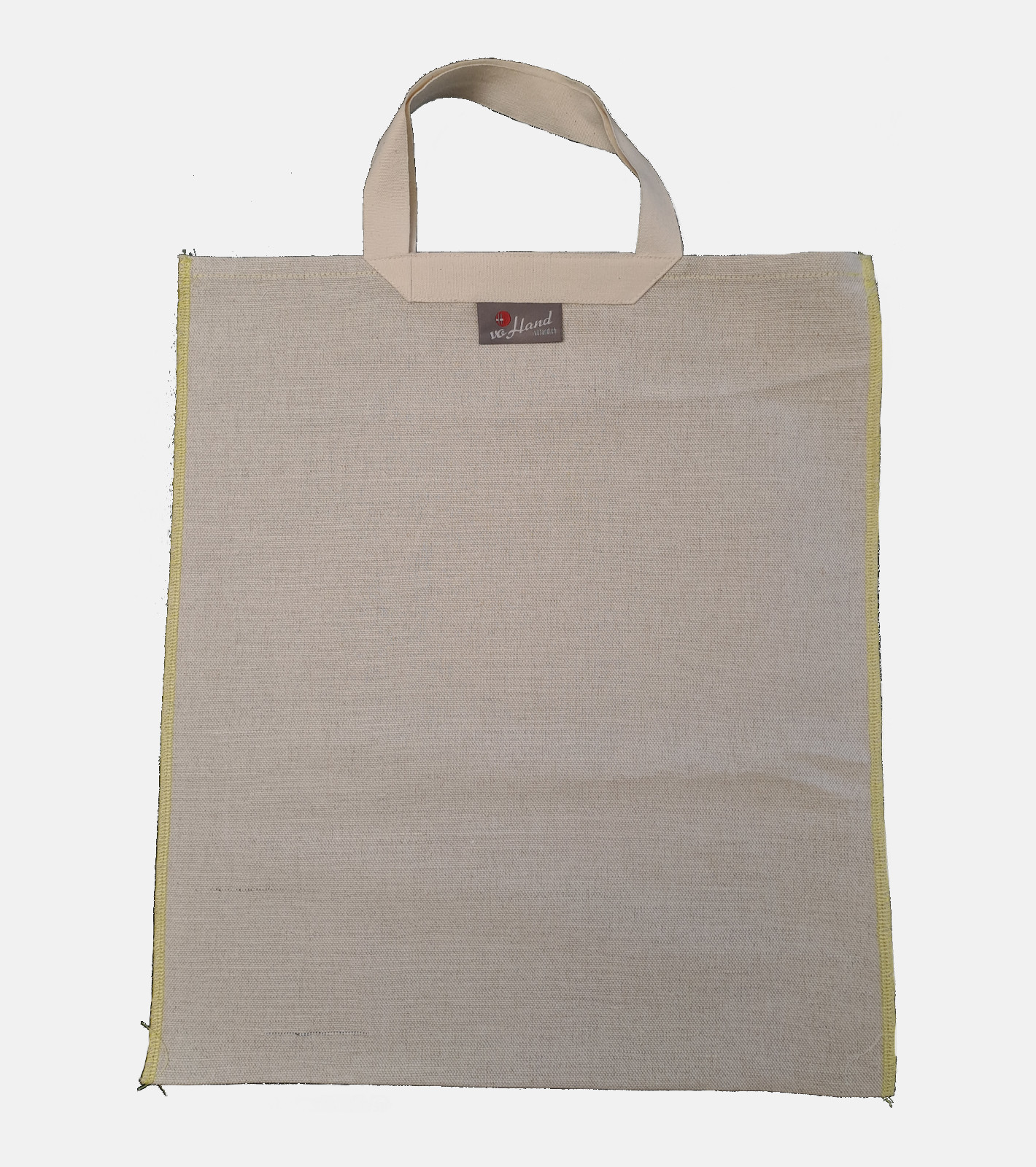 Die Baumwoll-Henkel bestehen aus recycelten Bändern, was die Tasche nicht nur praktisch, sondern auch besonders nachhaltig macht.